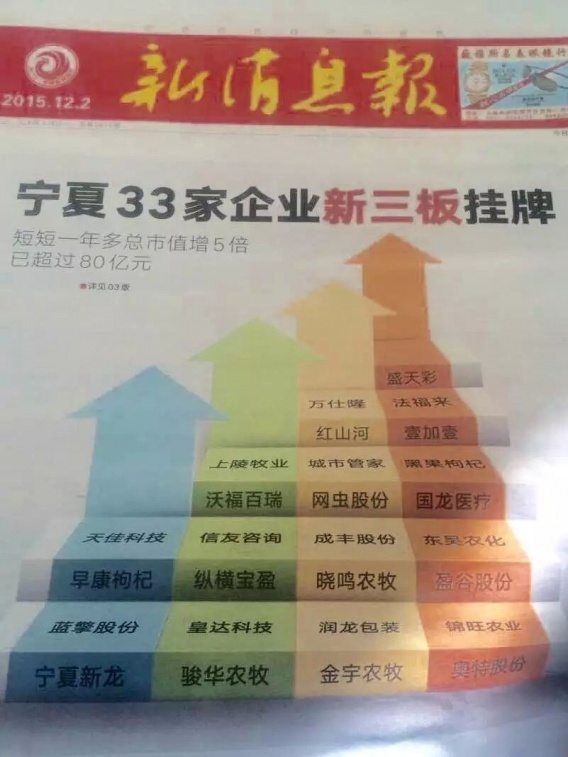 寧夏33家企業(yè)新三板掛牌總市值增5倍,已超過(guò)80億元,盛天彩名列其中。